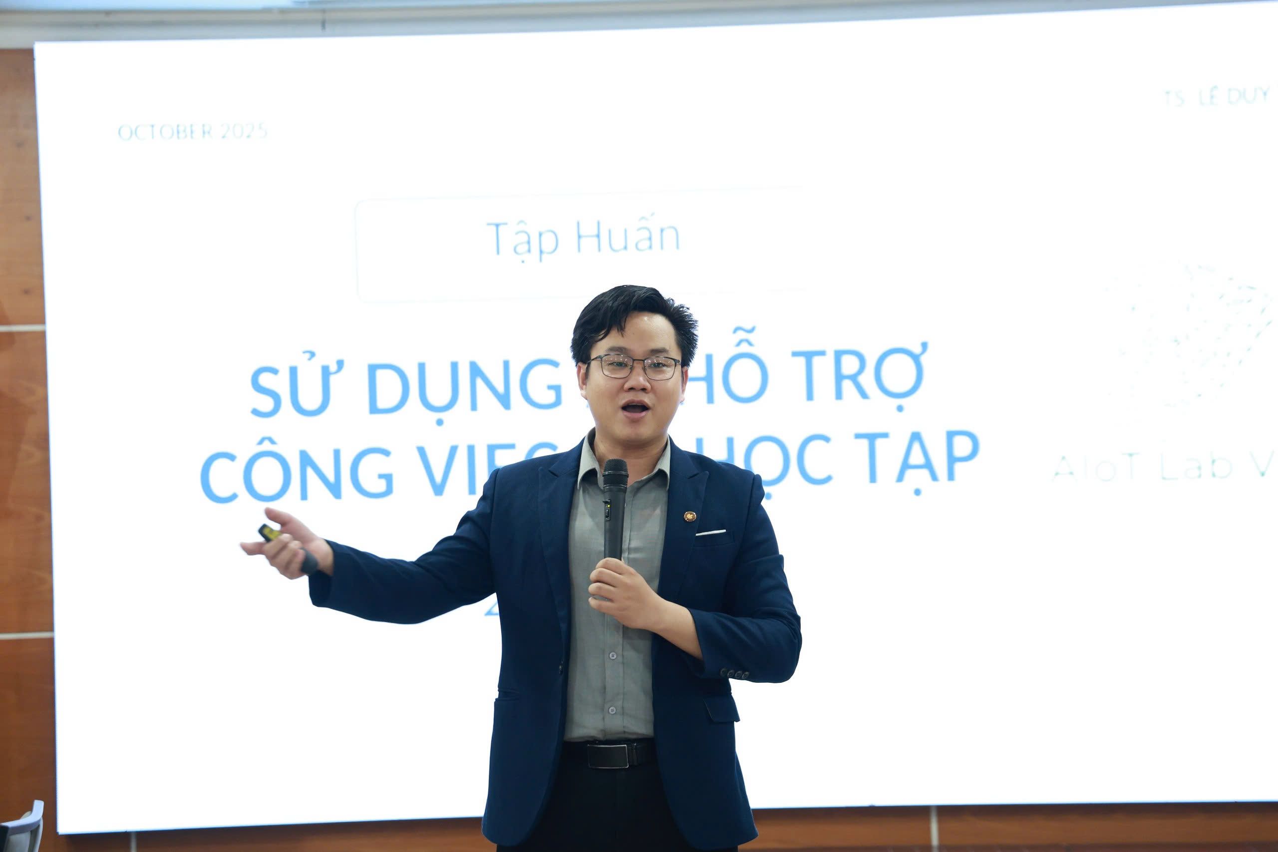 Ngày 22/10/2025, AIoT Lab VN cùng Cơ quan ĐHQG-HCM tổ chức lớp tập huấn về ứng dụng trí tuệ nhân tạo (AI) dành cho viên chức Văn phòng, các ban chức năng và đơn vị trực thuộc Khối thi đua 2. Chương trình thu hút gần 80 học viên tham dự, hướng đến nâng cao năng lực số và xây dựng môi trường “tổ chức học tập” tại ĐHQG-HCM.